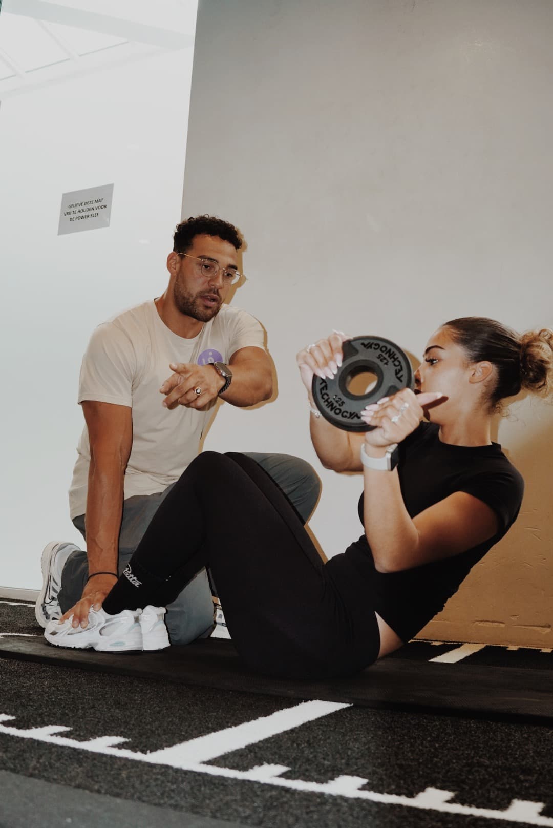 Fysiotherapeut begeleidt patiënt bij oefeningen